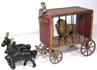GIOCATTOLO CARRO GABBIA CIRCO IN GHISA ANNI '20 DI ARCADE IN VERNICE ORIGINALE GABBIA LEONE View item