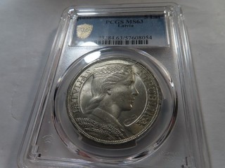 T74 Latvia 1931 Silver 5 Lati PCGS MS 63 View item