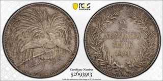 S10 Nuova Guinea tedesca 1894 A argento 2 marchi PCGS MS 63 bella tonalità View item