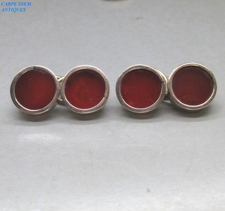EDWARDIAN SUPERBA COPPIA GEMELLI ORO MASSICCIO 15CT E CORNIOLA 12 8g 14mm DIA c1905 View item