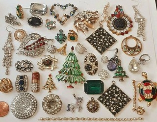 BIG Lot 40 Vintage Jewelry ALL RHINESTONE Craft Scrap Harvest Junk Drawer Parts View item