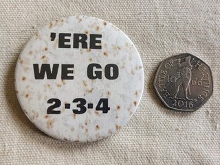 1970'S VINTAGE PUNK BADGE JILTED JOHN "GORDON IS A MORON!" LARGE LAPEL BADGE. View item