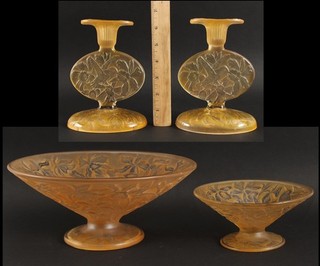 Antique Art Deco Consolidated Amber Glass Martele Hummingbird Candlesticks Bowls View item