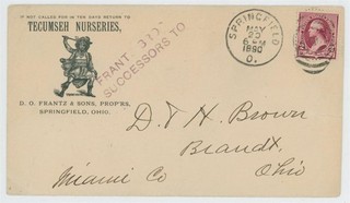 Mr Fancy Cancel 220 ILLUSTRATED AD COVER TECUMSEH NURSERIES SPRINGFIELD OH 1890 View item