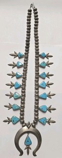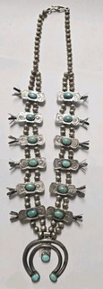 Vintage Sterling Silver Turquoise Squash Blossom Necklace 227 Grams 28" View item