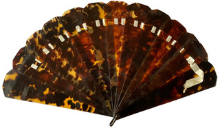 ANTIQUE FAUX TORTOISESHELL BRISE RIBBONED FAN 26 CMS X 6.5 CMS View item