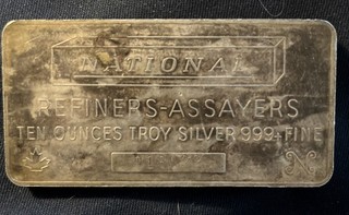 Vintage National Refiners Assayers 10 oz Silver Bar View item