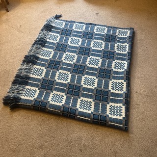 LARGE WELSH TAPESTRY WOOL THROW/BLANKET BLUE BLACK WHITE REVERSIBLE 83"X92” View item