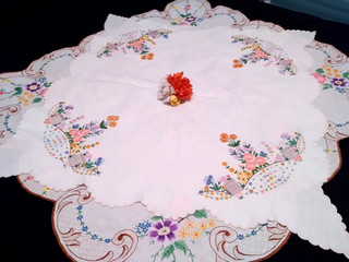Hand Embroidered Linen Tablecloth with Gorgeous Flowers View item