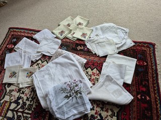 job lot bundle vintage 12 tablecloths serviettes lace doilies embroidered linen View item