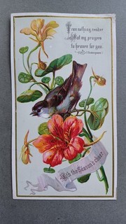 VICTORIAN GREETING CARD GREAT TIT BIRD & NASTURTIUM FLOWERS View item