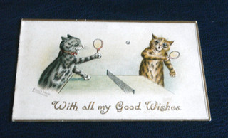ORIGINAL LOUIS WAIN SIGNED CAT GREETINGS CARD TABLE TENNIS. View item