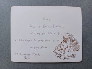 VICTORIAN CHRISTMAS CARD LITTLE PUG DOG & SNAIL View item