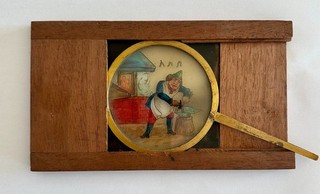 Good Antique Hand Painted Magic Lantern Slipper Slide Bug In Lettuce Side Eyes View item