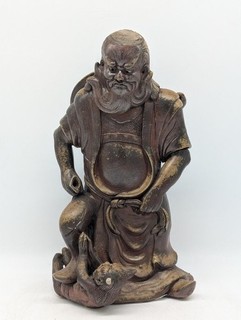 Terracotta Hotei Budai Figurine East Asia God of Fortune Sculpture China Japan View item