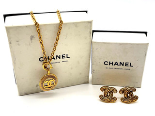 Auth Chanel Coco Mark Matelasse/Rhinestones Gold Brooch Set3 W/Box DD020077 View item