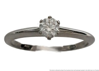 Signed Tiffany Co Platinum Diamond Solitaire Engagement Ring Approx 0.31 Ct View item