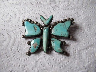 Vintage Signed Native American Navajo Pawn Silver Turquoise Butterfly Brooch Pin View item