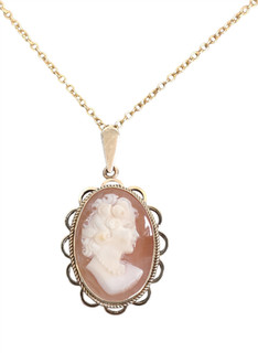 Estate 18k Solid Italian Gold Roman Goddess Flora Shell Cameo Brooch & Pendant preview